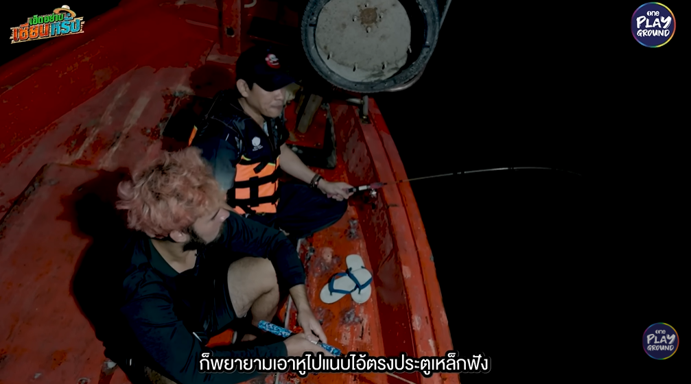 ทั้งคู่เริ่มลงมือไดหมึกด้วยตาข่ายและเหยื่อเรืองแสง ซึ่งต้องใช้ทักษะและความอดทนสูง เพราะหมึกจะไหวตัวไวและมักอยู่ลึก เซียนหรั่งคอยสอนแจ็คแบบละเอียด ทั้งการจับตาจังหวะไฟ การตะล่อมให้หมึกเข้าตาข่าย และวิธีไม่ให้หมึกพ่นน้ำหมึกใส่หน้า